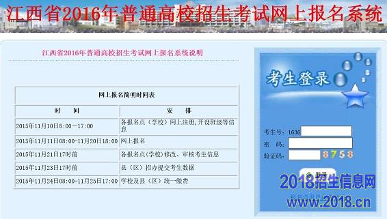 从江西省教育考试院获悉,江西2016年普通高考网上报名入口已经开通,至11月20日18时截止,逾期不予补报。江西省教育考试院提醒考生,所有考生均须进行网上报名。
