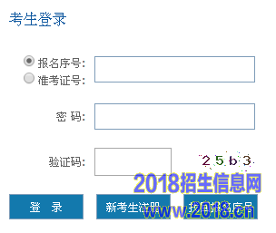 第一步:首先选择“准考证号”,输入准考证号、密码(初次密码为身份证号码最后六位)和验证码,点击“登录”按钮,确认基本信息正确后填写报考信息 >> 第二步:上传照片(首次登录本系统的考生都要按照要求上传照片。如果已经登录过本系统并已经上传照片的考生,下次登录报考时不再上传照片) >> 第三步:现场确认。