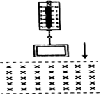 14. 如图所示,弹簧测力计下端用细线悬挂重为3N的金属框,其正下方有一磁场区域(图中“×”表示垂直于纸面向里的磁感线).现使金属框从某一高度竖直匀速下降,发现当金属框刚进入磁场到完全进入磁场的过程中(金属框始终匀速),弹簧测力计的示数小于3N.若将磁感线的方向改为垂直于纸面向外,请判断:重复上述操作,在金属框匀速进入磁场的过程中,弹簧测力计的示数是大于3N还是小于3N?并说明你的理由.