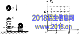 18.如图所示,将轻质弹簧的一端固定在水平桌面上,在弹簧正上方O点释放一个重为G的金属小球,下落到A点时与弹簧接触并压缩弹簧至B点,随即被弹簧竖直弹出(整个过程弹簧在弹性范围内).请在坐标中画出小球从O点下落直至B点的过程中,其所受合力的大小随运动距离变化的大致关系图象.(不计空气阻力)