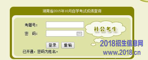 湖南省2015年10月份自学考试成绩已于11月24日向社会公布,考生可以通过拨打声讯号码16885678查询本人成绩或者拨打人工台1607160进行咨询;联通用户可以通过发送 “CJZK#”加“准考证号”(如:CJZK#010203040506)到1062899271查询,移动、电信C网用户可以通过发送“CJZK#”加 “准考证号”(如:CJZK#010203040506)到1062899261查询。