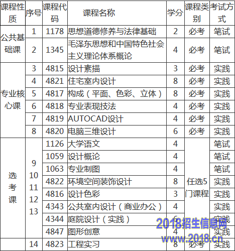高等教育自学考试环境艺术设计专业(专科)考试计划