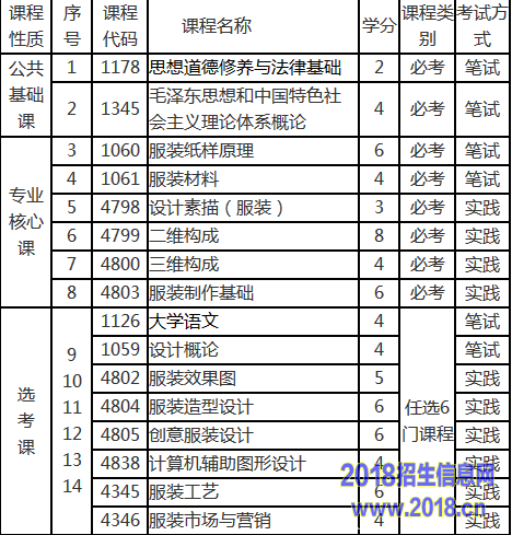 高等教育自学考试服装艺术设计专业(专科)考试计划