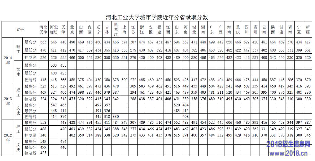 2016河北工业大学城市学院分数线参考:河北工业大学城市学院近年分省录取分数(2015)