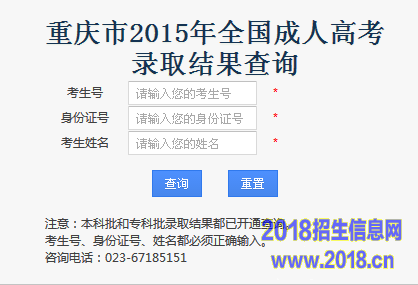 重庆成人高考2015年录取查询地址已开通 点击进入