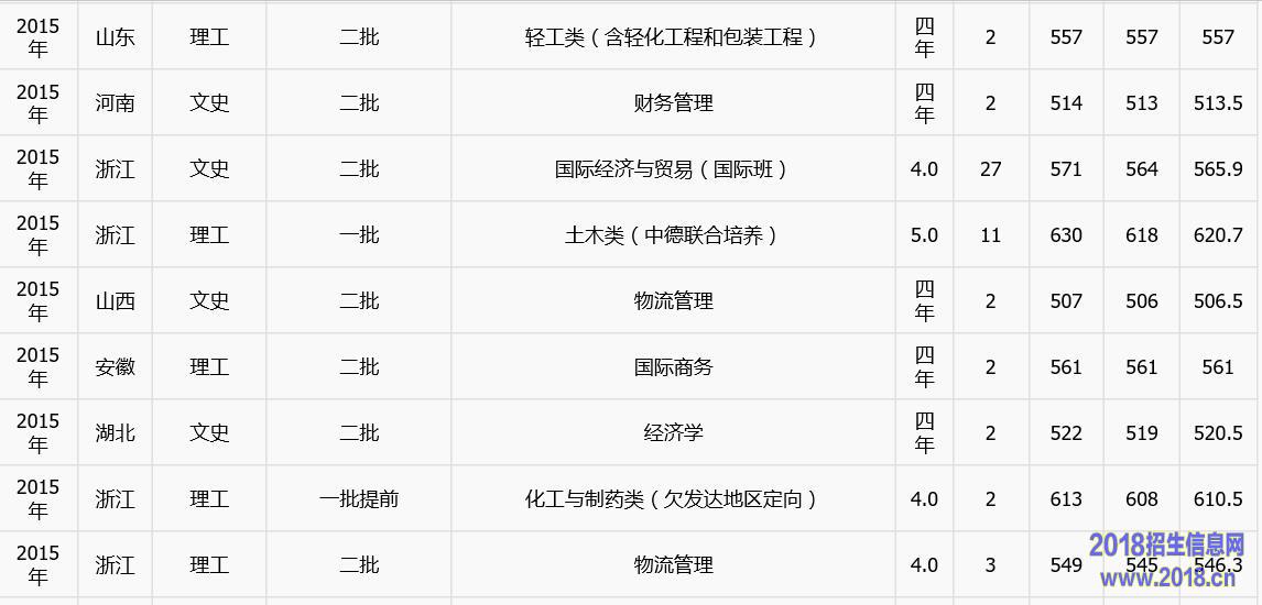 2016浙江科技学院录取分数线参考:浙江科技学院2015分数线各省分专业录取线统计