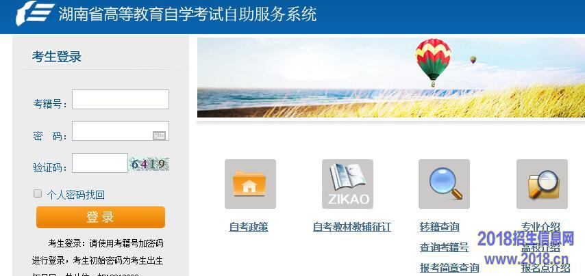 考生登录:请使用考籍号加密码进行登录,考生初始密码为考生出生年月日,共八位,如19810809。