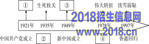 7.下图是某同学尚未完成的关于中国共产党奋斗历程的年代尺,其中②处应填写的是