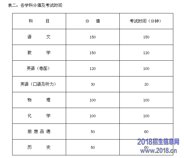 中考时间及各科分值公布