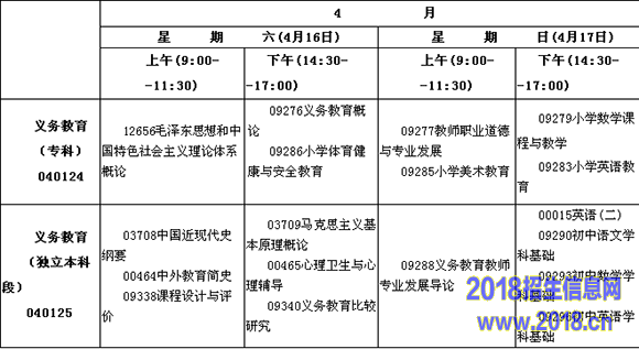 (一)义务教育专业(专科、本科)考试