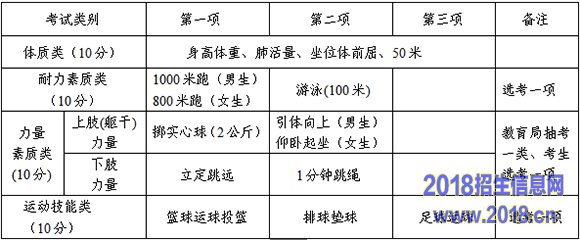 体育考试项目、分值及要求:
