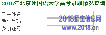从北京外国语大学获悉,北京外国语大学2016年高考录取查询已可查询。考生可登陆北京外国语大学本科招生网陆续查询录取情况,2016北京外国语大学高考录取查询系统入口网址(http://zhaosheng.bfsu.edu.cn/)。实际情况已收到学校录取通知书为准!