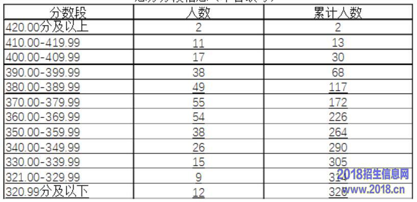 2016年上海市普通高校招生表演类专业统考成绩分布表总分分段信息(不含缺考)