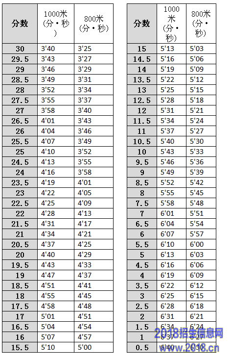 淮北市2016年初中毕业升学体育考试评分标准(必考)