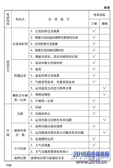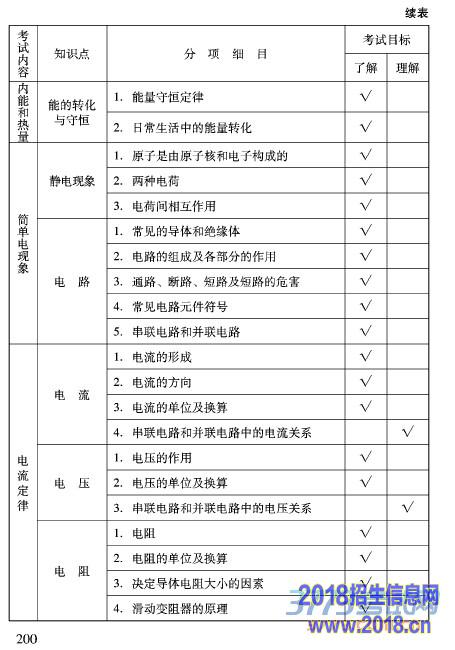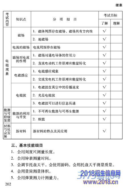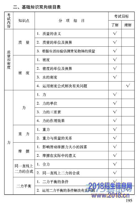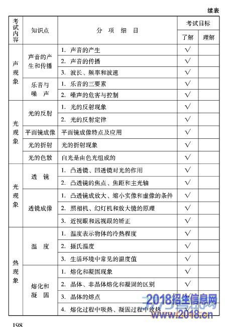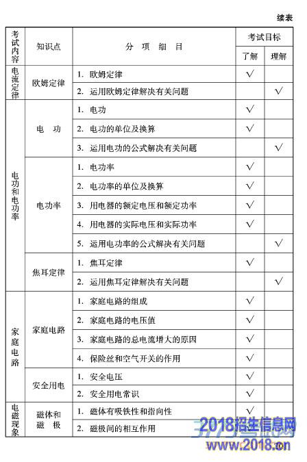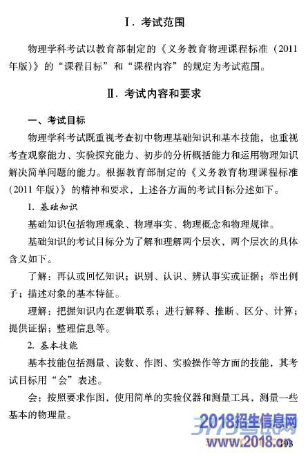 2016北京中考物理大纲考试说明