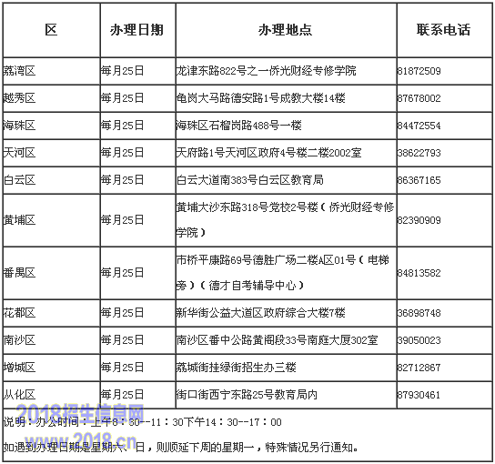 广州2016自考个人办理转考、免考地点公布,请从2016年1月开始,广州市个人办理自学考试转考、免考、考籍更正等业务的考生,在规定的日期和时间到下列区招考办指定地点办理。