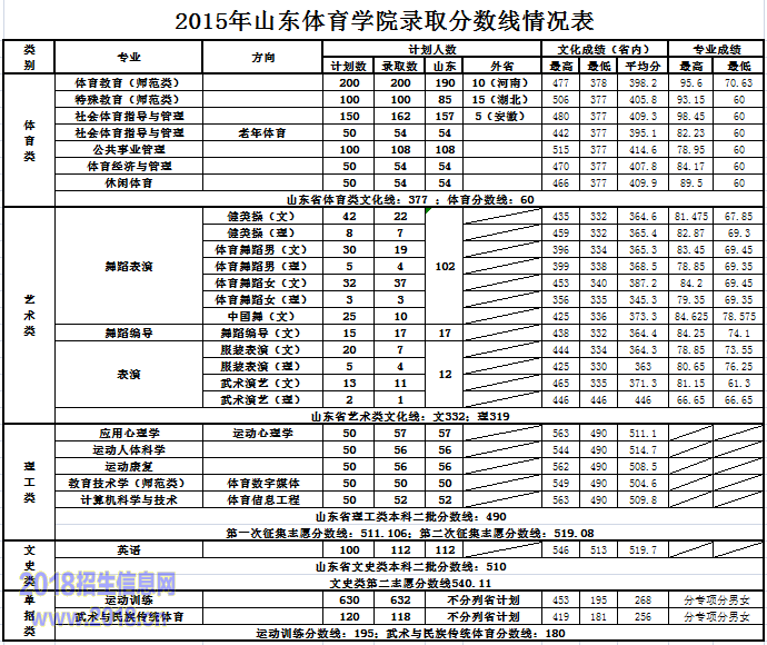 2016年山东体育学院分数线参考:山东体育学院2015年录取分数线