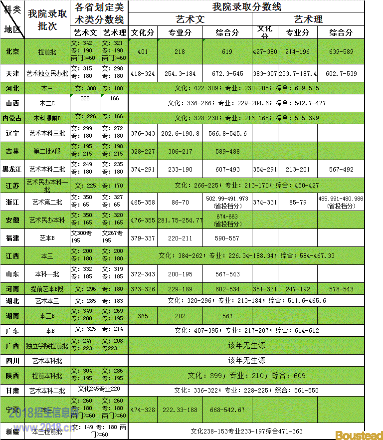 天津商业大学宝德学院2015年艺术类各省划定及我院录取分数线