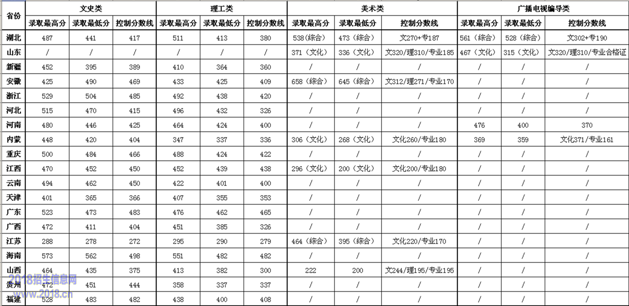 2016湖北大学知行学院分数线(附历年本专科录取线)