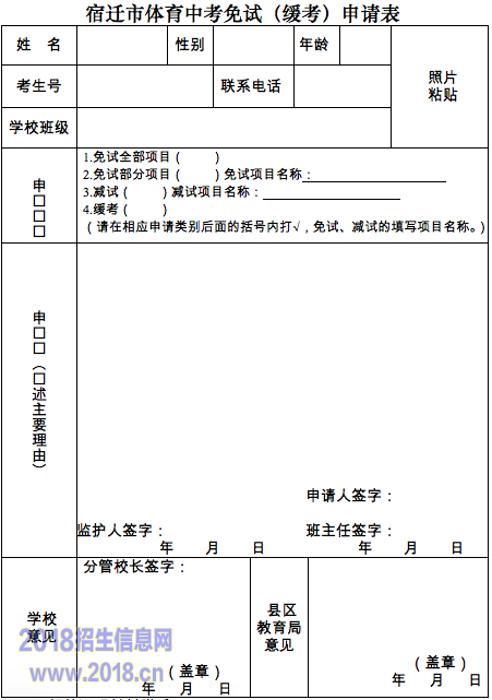 2.宿迁市体育中考免试(缓考)申请表