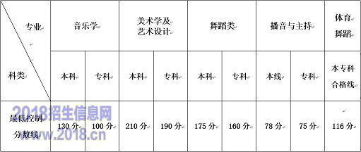 云南省2016年普通高校招生艺术类统考本、专科专业最低控制分数线