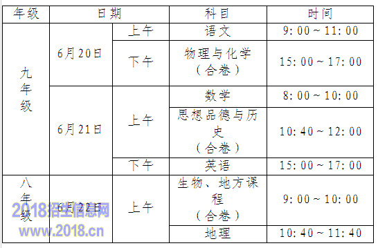2016年中考考试时间为在6月20日至21日。各科具体考试时间(北京时间)如下: