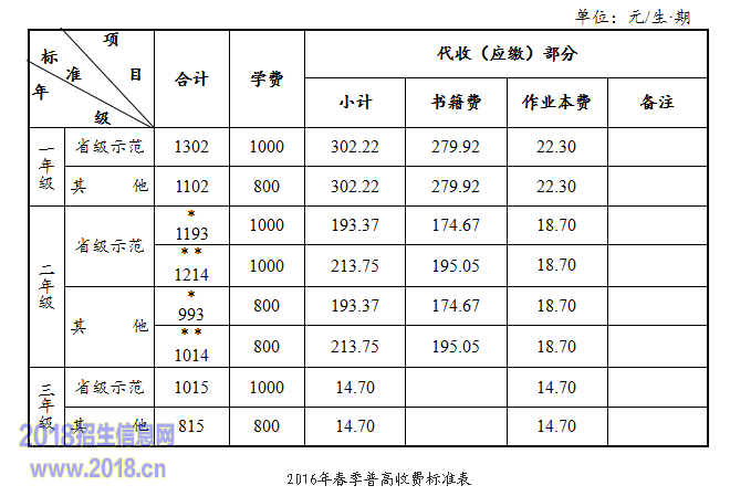 2月17日,由长沙市发改委、财政局、教育局联合发布了《关于长沙市2016年春季中小学收费标准的通知》,2016年长沙市春季普通中小学课本费、作业本费收费标准已经发布。公办高中停招择校生,原招收的择校生仍按原收费标准执行。