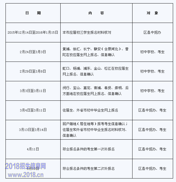 2016上海中招日程安排表