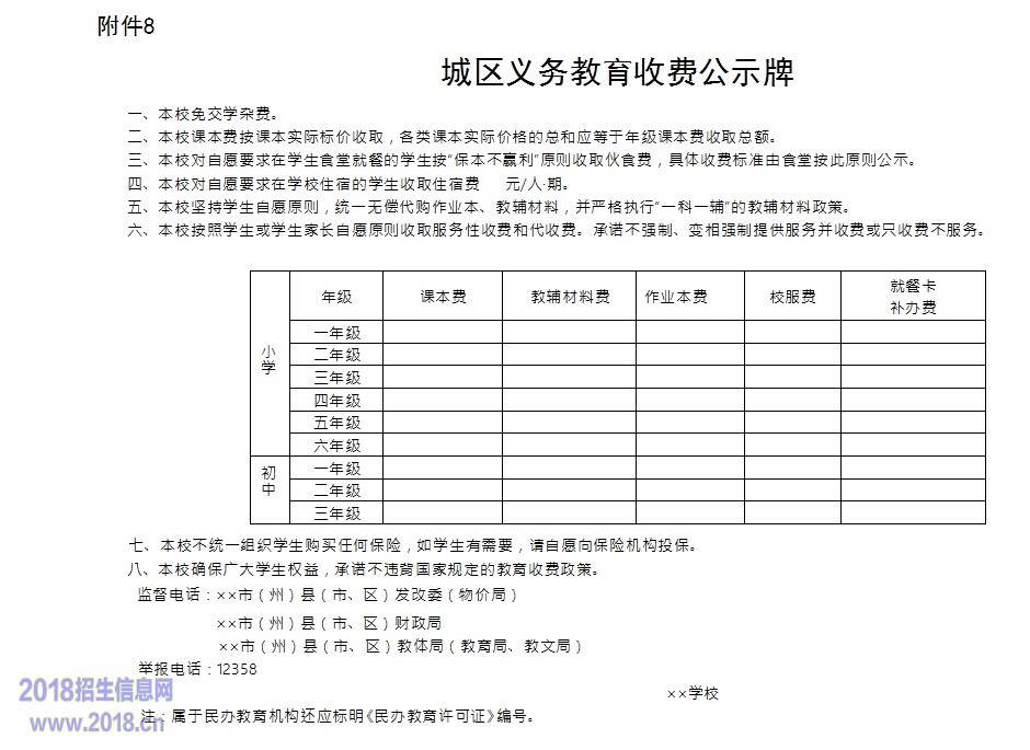 这份由市发改委、市财政局和市教育体育局联合下发的关于2016年春季中小学教育收费有关事项的通知(以下简称通知)明确,农村义务教育阶段学校,可向自愿在校就餐的学生收取伙食费(含饭菜加热服务费或大米加工服务费),可代收作业本费和教辅材料费,除此之外,不得另行收取其他费用;城市学校可按规定向学生收取课本费和作业本费,向自愿接受相关服务的学生收取教辅材料费、住宿费、伙食费、校服费、就餐卡补办费、校外活动费,除此之外,不得另行收取其他费用。