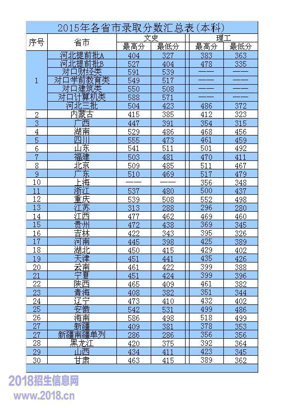 2016河北外国语学院录取分数线参考:河北外国语学院2015分数线各省本科专科分数线情况统计