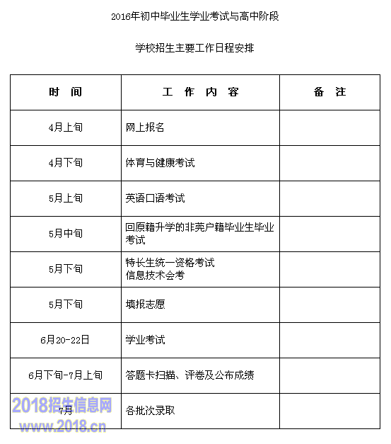 2016东莞中考期间招生日程表