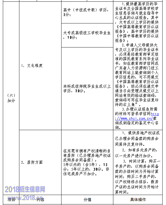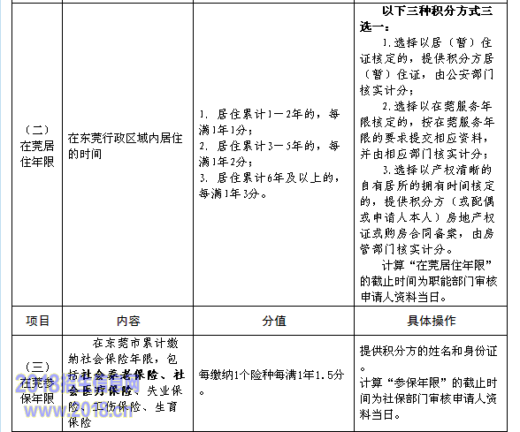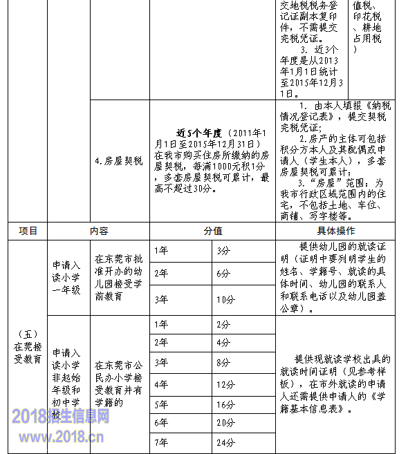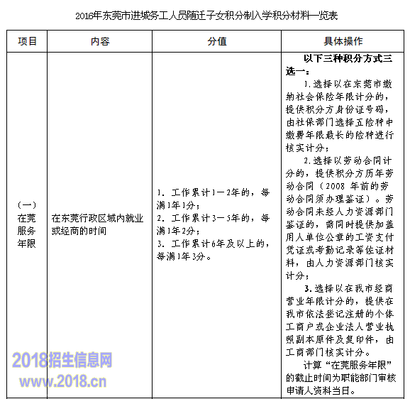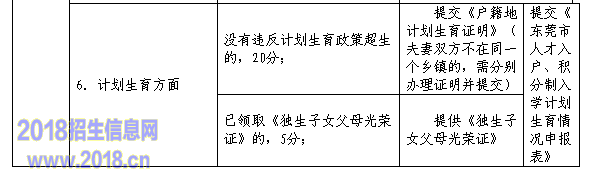 2016东莞务工人员随迁子女积分制入学积分材料一览表