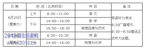 (二)2016年全省统一的初中毕业学业考试时间为6月25日至26日。各科具体考试时间如下:
