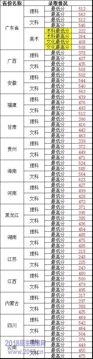 2016华南理工大学广州学院分数线参考:2018招生网整理了华南理工大学广州学院2015年录取分数线各省各专业录取分数情况统计