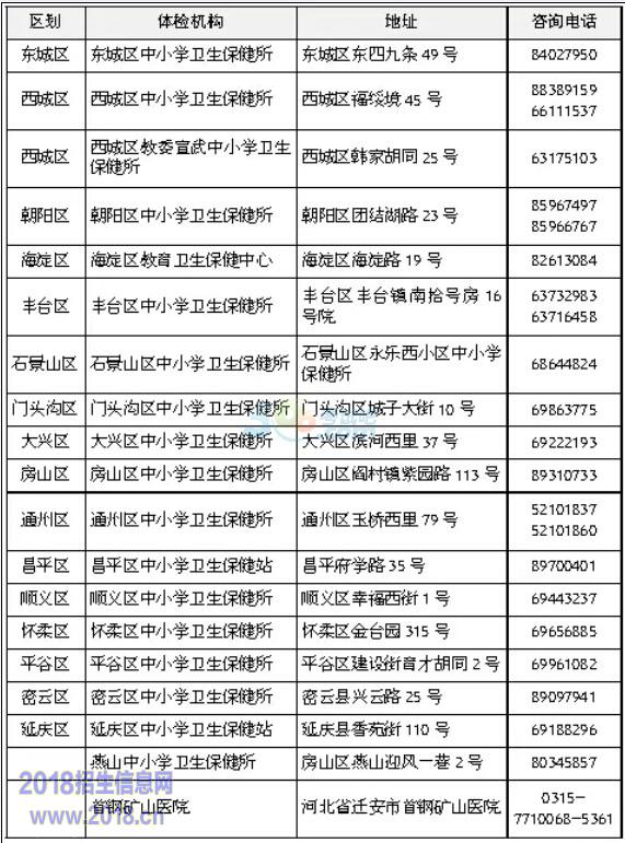 (1)考生要按照学校的安排在规定时间到所在区县中小学卫生保健所进行体检。