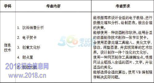 其中信息技术由市教科院统一命题,考查形式为上机操作,各县(市、区)教育局组织实施,在初二年级的5月底进行,具体时间另行通知。