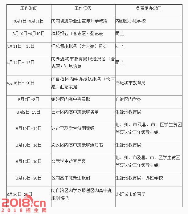 2016年区内高中班学校招收内初班毕业生录取工作日程安排表
