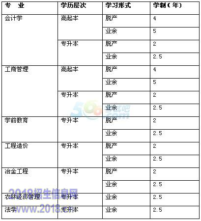 按学习形式分为业余和脱产,按学历层次分为本科和专科。