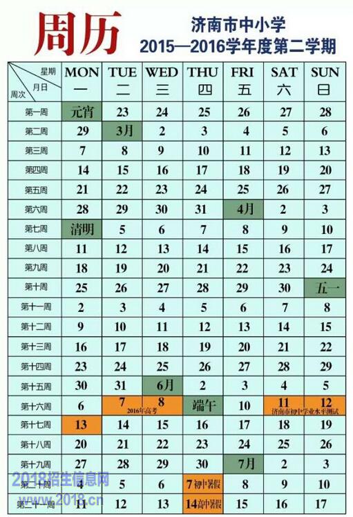 根据《济南市中小学2015—2016学年度第二学期周历》,2016济南中考时间为6月11日至13日,具体如下: