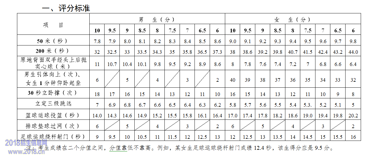 2016南通如东中考体育考试评分标准表