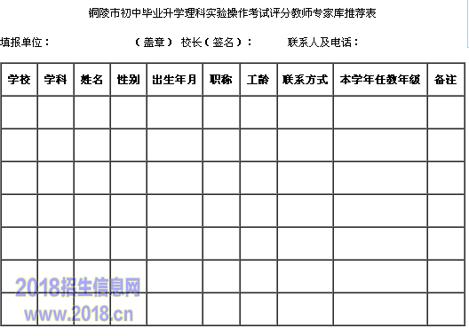 附件:铜陵市初中毕业升学理科实验操作考试评分教师专家库推荐表