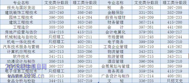 吉林省经济管理干部学院2014年高职分专业录取分数段