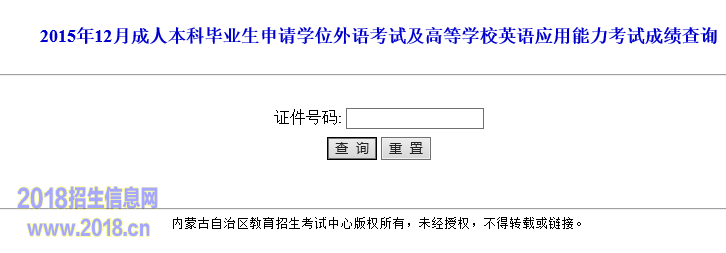 内蒙古2015年12月成人本科毕业生申请学位外语考试及高等学校英语应用能力考试成绩查询入口已开通