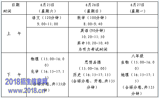 为做好2016年海南省初中毕业生学业水平考试和高中阶段学校招生工作,推进考试招生制度改革,均衡发展义务教育,促进普通高中教育与中等职业教育协调健康发展,维护教育公平和社会和谐,确保基础教育课程改革顺利实施,推动学校深入实施素质教育,提高教育教学质量。3月25日,海南省制定印发了《2016年海南省初中毕业生学业水平考试和高中阶段学校招生工作实施细则》。记者获悉,全省统一考试时间确定为6月25日至27日。