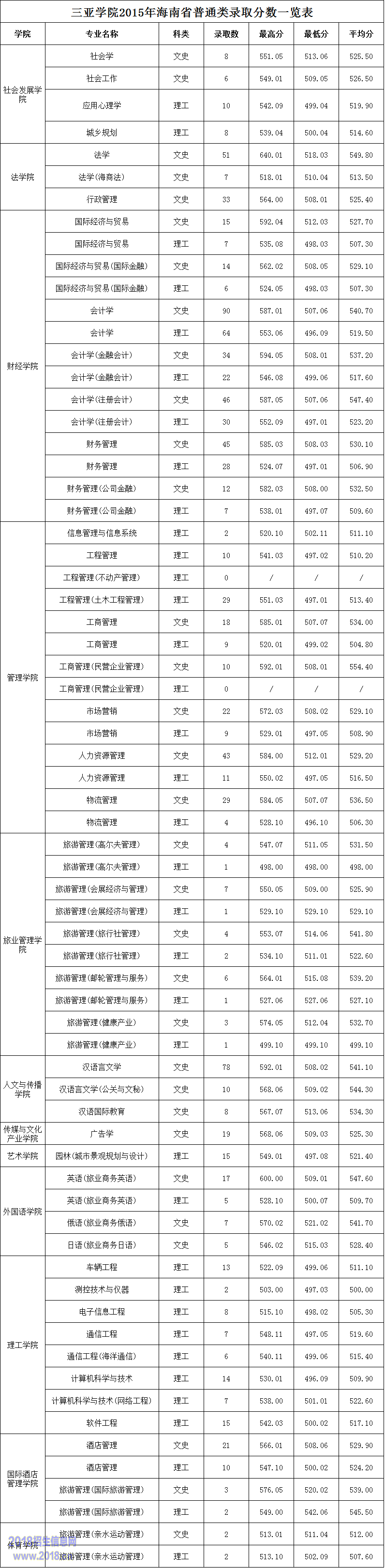 2016三亚学院分数线及2015年分数线各省情况完整版数据请进入三亚学院招生网官网历年录取栏目查看更新:点击进入查询