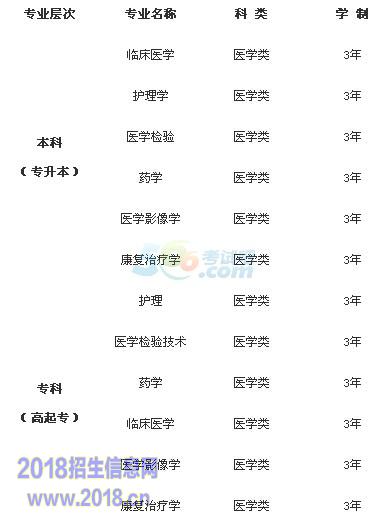 学校面向全国24个省(市、自治区)招生,生源充足、质量优。现有全日制在校硕士研究生、本专科学生10300多人,继续教育及自考学生23000余人。开设有18个本科专业。在临床医学本科专业中设有肿瘤方向、眼科方向;在医学检验本科专业中设有输血医学方向、临床生化检验方向;公共事业管理专业中设有卫生事业管理方向、老年事业管理方向。应用心理学、公共事业管理专业开办双学位教育。开设临床医学(全科医学定向生)、医学检验技术、药学、护理、食品营养与检测等5个专科专业。