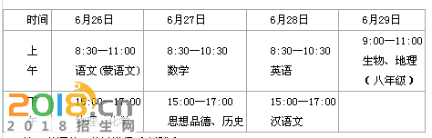 2016呼伦贝尔中考笔试学科考试时间定于6月26日至29日。各科考试时间安排见下表: