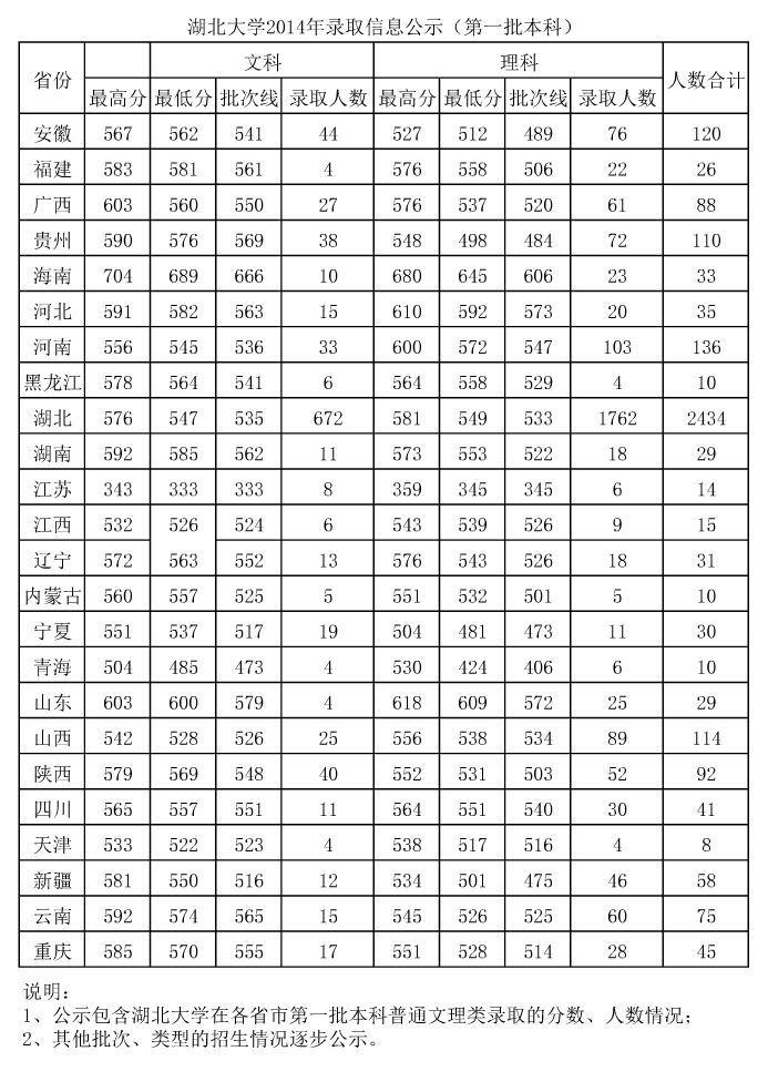 湖北大学2015年招生录取分数线官网暂未公布,2018招生信息网特整理了湖北大学2014年录取分数线数据以供参考