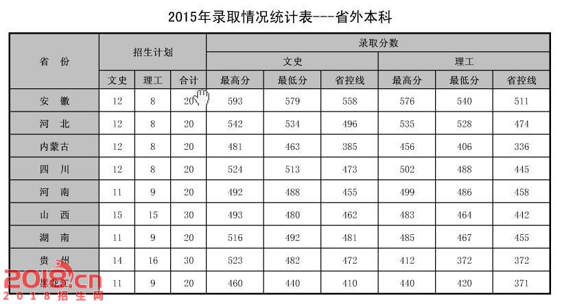 山东管理学院2015年录取分数情况统计表(省外本科)