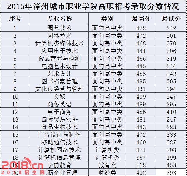 2016漳州城市职业学院分数线参考:2018招生网整理了漳州城市职业学院2015年录取分数线各省各专业录取分数情况统计